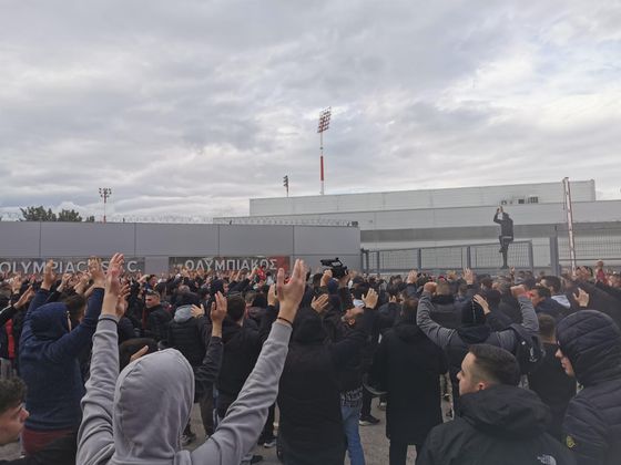 Χιλιάδες φίλοι του Ολυμπιακού έφτασαν στο προπονητικό κέντρο του Ρέντη, με στόχο να εμψυχώσουν τους παικτες του Μίτσελ ενόψει ντέρμπι με την ΑΕΚ.