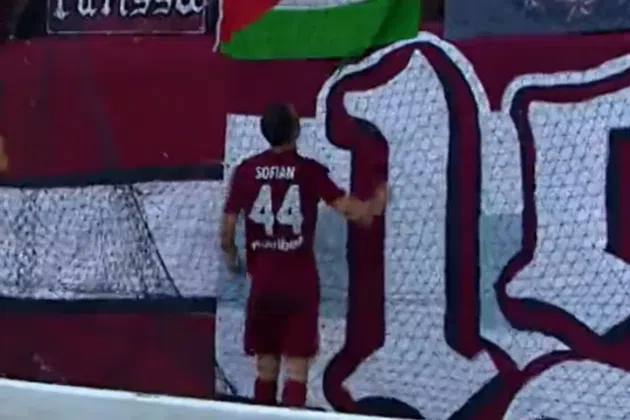 O Σοφιάν Τσακλά σκόραρε το τέρμα που χάρισε στην ΑΕΛ Novibet την ισοπαλία της κόντρα στην ΑΕΚ (1-1) και πανηγύρισε φιλώντας την σημαία της Παλαιστίνης.