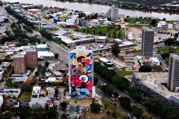 Η τοιχογραφία με πρωταγωνιστή τον Μέσι και το τρόπαιο του Μουντιάλ έχει μπει στην τελική της μορφή κι αναμένεται να σπάσει πολλά ρεκόρ, ούσα η μεγαλύτερη που έχει υπάρξει ποτέ.