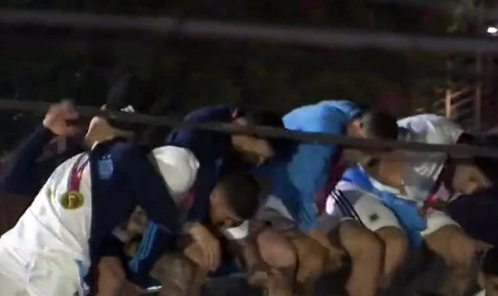 Μέσι, Ντε Πολ, Ντι Μαρία, Παρέδες και Οταμέντι αντέδρασαν ενστικτωδώς, κάνοντας «ντρίμπλα» στο καλώδιο για να μην τους κόψει τα κεφάλια!