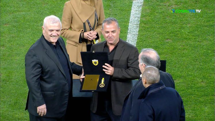 Στον αγωνιστικό χώρο της OPAP Arena για να τιμήσει την προσφορά επιχειρηματιών που βοήθησαν στην ανέγερση του γηπέδου.