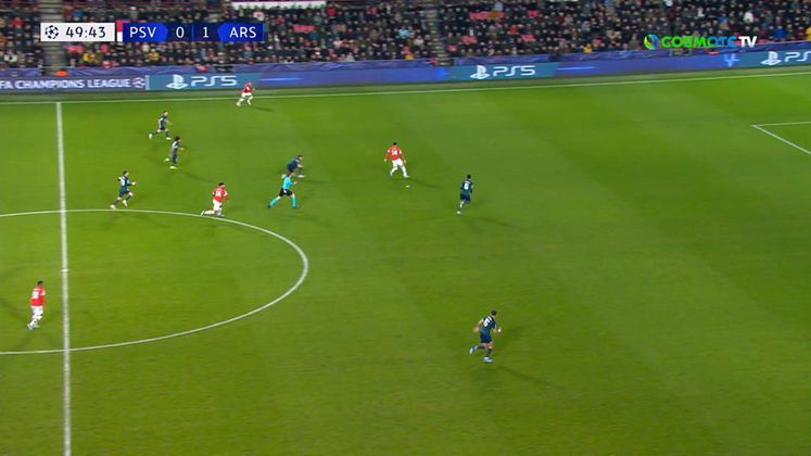 Οι «κανονιέρηδες» πήραν κεφάλι στο σκορ με Ενκέτια λίγο πριν τη λήξη του πρώτου ημιχρόνου κόντρα στην Αϊντχόφεν.