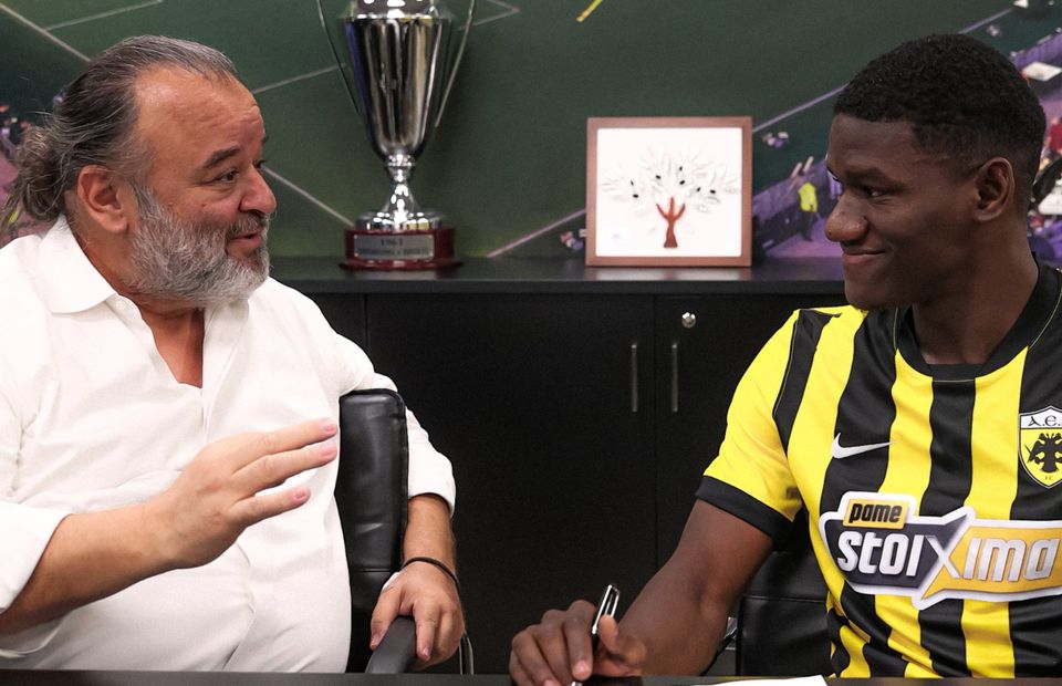 Ο Μάριος Ηλιόπουλος και ο Ζίνι «πρωταγωνίστησαν» σε ένα ωραίο στιγμιότυπο μετά το νέο συμβόλαιο που υπέγραψε ο νεαρός επιθετικός με την ΑΕΚ