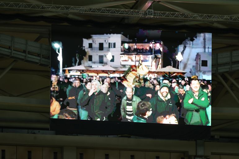 Κατά τη διάρκεια του αγώνα, στα matrix της Allwyn Arena προβάλλονταν πλάνα από την Πλατεία Αετού, όπου είχαν συγκεντρωθεί εκατοντάδες φίλοι της Ένωσης για να στηρίξουν την ομάδα τους.