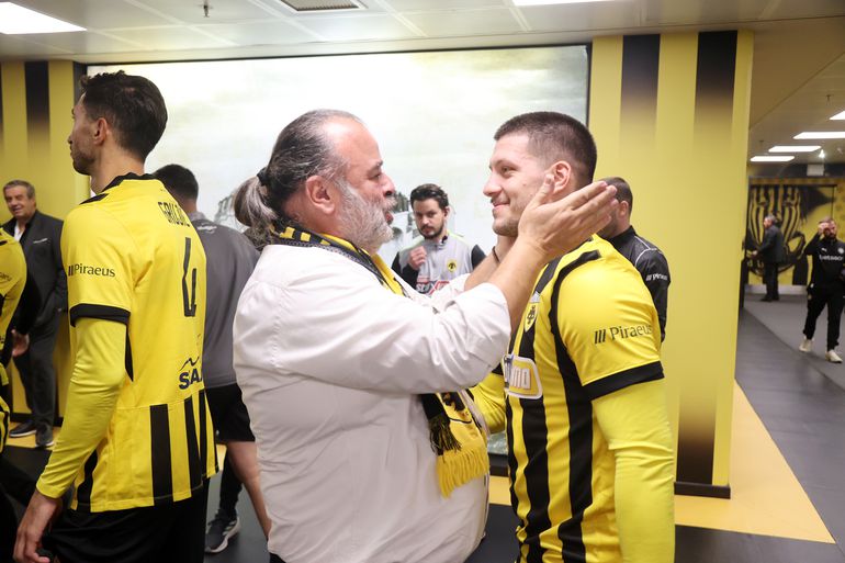 Ο Μάριος Ηλιόπουλος πριν από το ματς της ΑΕΚ με τον ΟΦΗ κατέβηκε στα αποδυτήρια και αγκάλιασε τον Λούκα Γιόβιτς, ο οποίος ήταν ο πρωταγωνιστής της νίκης της Ένωσης με τον Παναθηναϊκό την περασμένη Κυριακή (30/11).