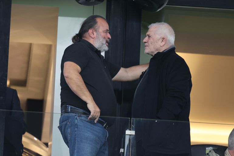 Ο Δημήτρης Μελισσανίδης βρίσκεται στην Allwyn Arena για το ΑΕΚ - Ολυμπιακός και δεν έχασε την ευκαιρία να βρεθεί με τον πρόεδρο της Ένωσης, Μάριο Ηλιόπουλο.