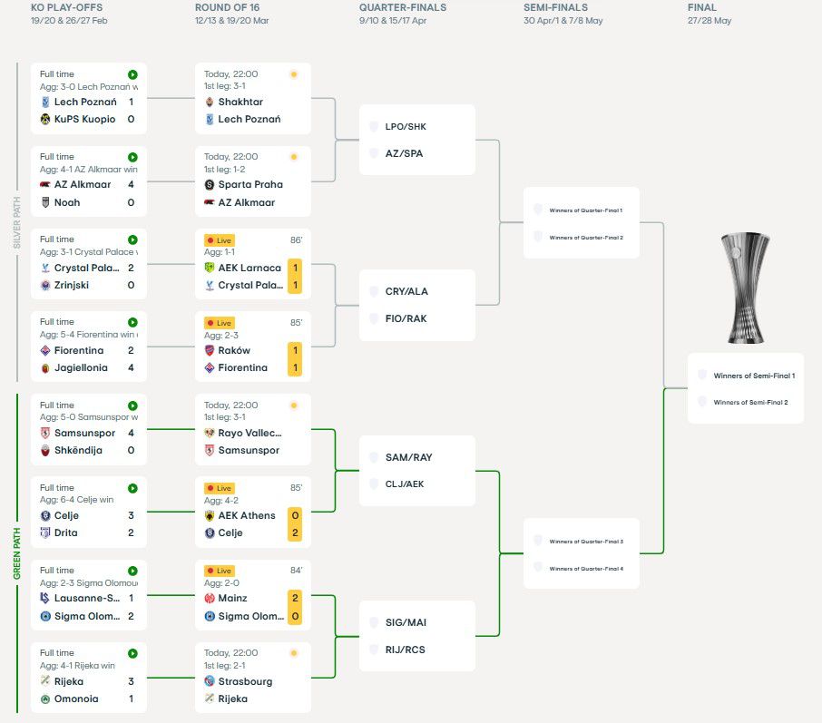 Τελικός: Λεχ Πόζναν, Σαχτάρ Ντόνετσκ, Άλκμααρ, Σπάρτα Πράγας, Κρίσταλ Πάλας, ΑΕΚ Λάρνακας, Φιορεντίνα
