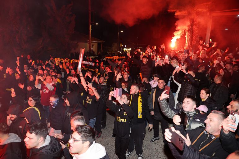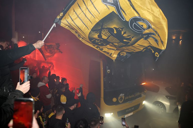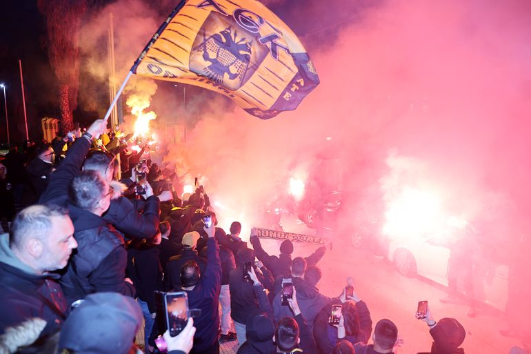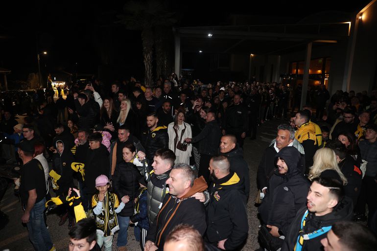Όταν έφτασε το πούλμαν της Ένωσης, η νύχτα έγινε μέρα και σχηματίστηκε ένας κλοιός λατρείας. Απ' αυτόν τον κλοιό πέρασαν και οι παίκτες και ο Μάρκο Νίκολιτς για να φτάσουν μέχρι και την είσοδο του ξενοδοχείου. Και αποθεώθηκαν από τον κόσμο. Με τον Μάρκο Νίκολιτς αλλά και τον Λούκα Γιόβιτς να ακούνε τα ονόματα τους ρυθμικά από τους οπαδούς της ΑΕΚ.
