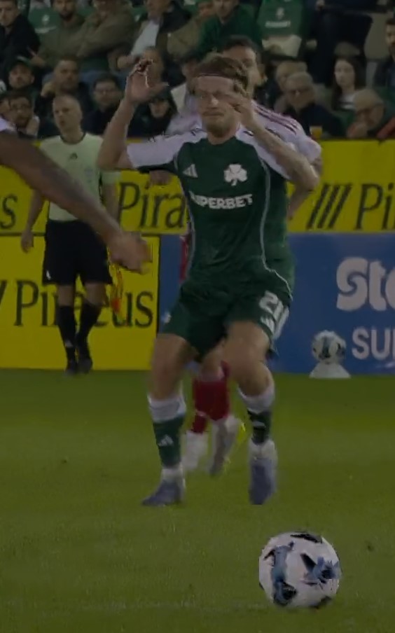 Ο Κροάτης στόπερ του έδωσε την μπάλα σε θέση τετ α τετ και ήταν χαρακτηριστική η αντίδρασή του μόλις αντιλήφθηκε τι συνέβη και πριν καν ο αντίπαλός του πλασάρει εύστοχα.