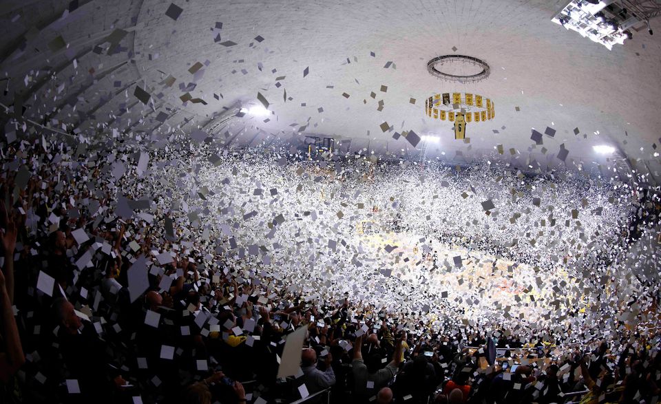 Λίγο πριν το τζάμπολ δε οι φίλαθλοι της ομάδας πέταξαν χιλιάδες χαρτάκια και η ατμόσφαιρα ήταν φανταστική.