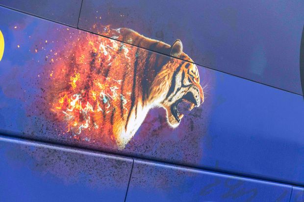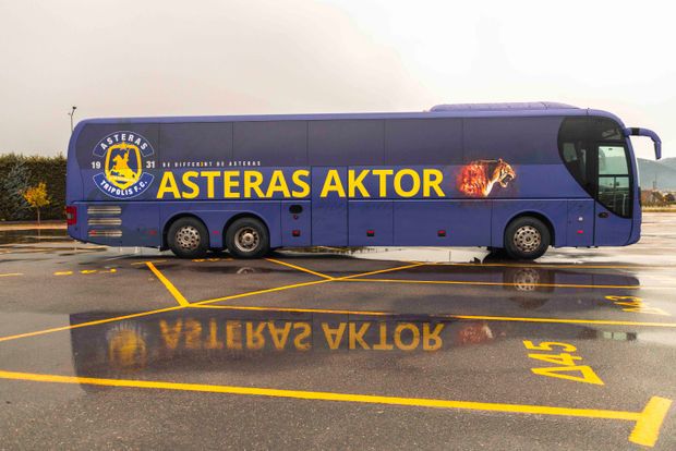 Στο καινούργιο λεωφορείο του Αστέρα Aktor ξεχωρίζει η όψη μίας τίγρης που φιγουράρει στα πλάγια του πούλμαν