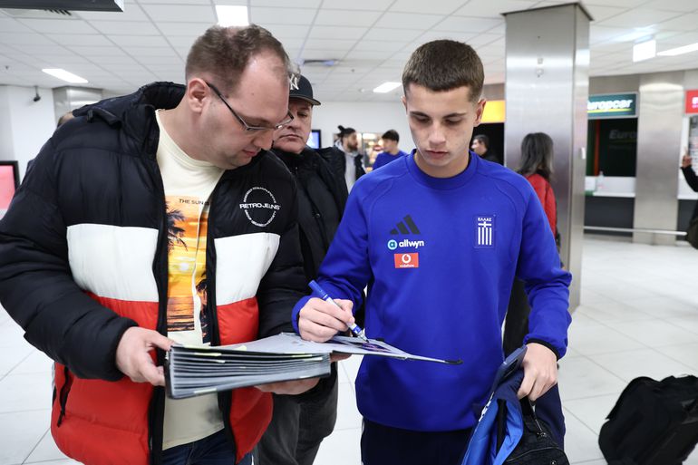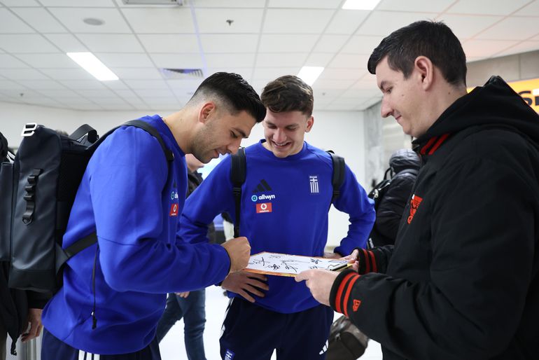 Οι διεθνείς της Εθνικής έγιναν πόλος έλξης στη Βουδαπέστη, μοιράζοντας αυτόγραφα και φωτογραφίες σε φιλάθλους που τους περίμεναν στο αεροδρόμιο.