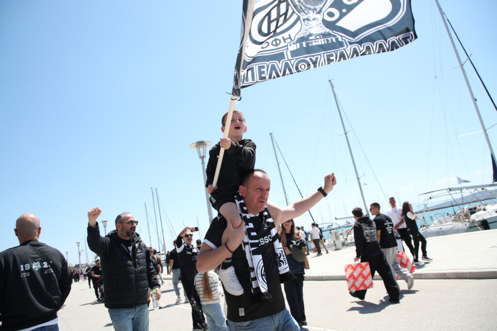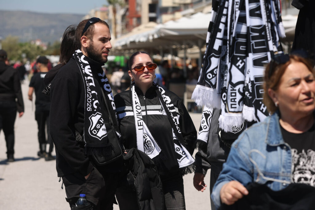 Λίγες ώρες πριν από την έναρξη του τελικού του Κυπέλλου Ελλάδας, οπαδοί του ΠΑΟΚ και του ΟΦΗ δημιούργησαν μια όμορφη ατμόσφαιρα στον Βόλο, τραγουδώντας από κοινού συνθήματα.