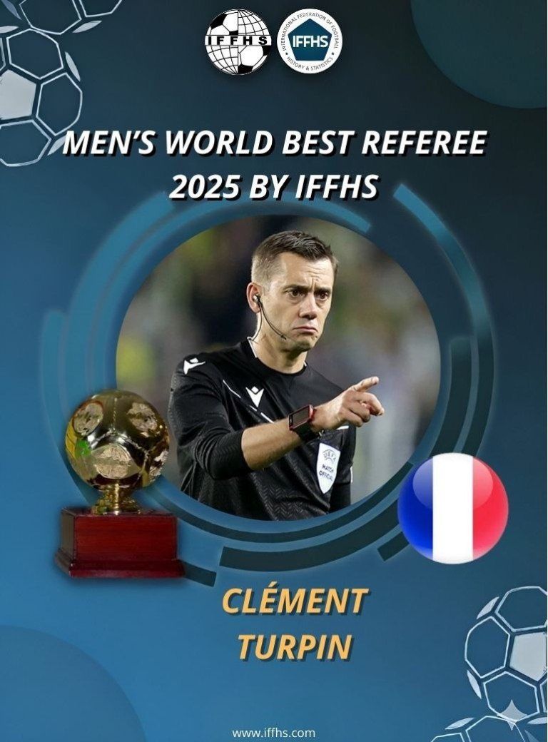 Ο Κλεμάν Τουρπέν αναδείχθηκε από τη Διεθνή Ομοσπονδία Ιστορίας και Στατιστικής του Ποδοσφαίρου (IFFHS) ως ο καλύτερος διαιτητής στον κόσμο για το 2025, συγκεντρώνοντας 65 βαθμούς και κατακτώντας για πρώτη φορά στην καριέρα του την κορυφή της παγκόσμιας κατάταξης.
