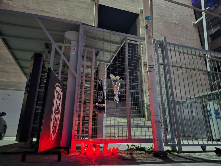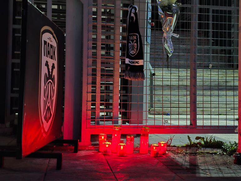Το Sportal βρέθηκε στο γήπεδο της Τούμπας, όπου έξωθέν του έχουν τοποθετηθεί καντηλάκια κι ανθοδέσμες ως ελάχιστος φόρος τιμής στους νεκρούς φίλους της ομάδας, ενώ οι σημαίες είναι μεσίστιες.