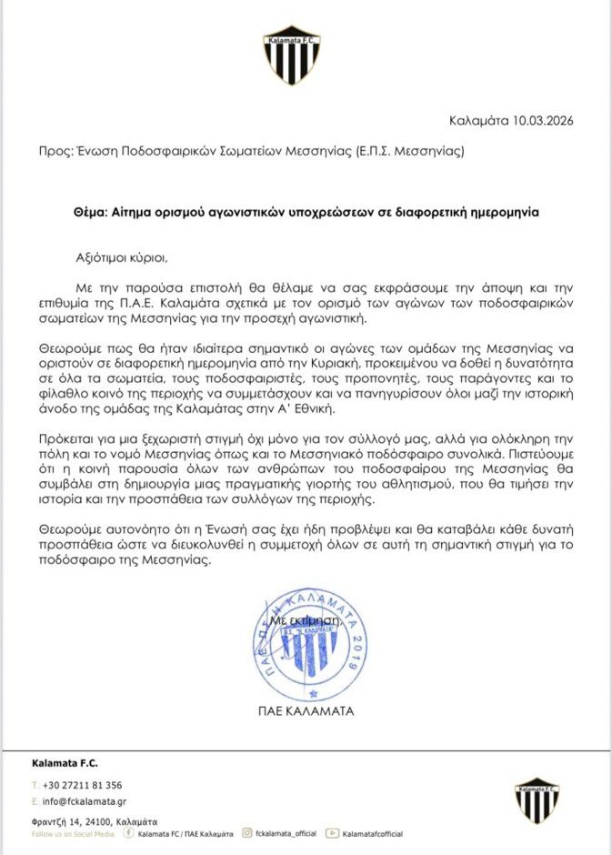 Με σεβασμό προς όλους τους συλλόγους και το τοπικό ποδόσφαιρο, η ομάδα μας κατέθεσε αίτημα στην ΕΠΣ Μεσσηνίας ώστε εκείνη την ημέρα να μην διεξαχθούν αγώνες. Ο λόγος απλός και αυτονόητος: να μπορέσει όσο το δυνατόν περισσότερος κόσμος να βρίσκεται στη γιορτή της ομάδας και της πόλης.
