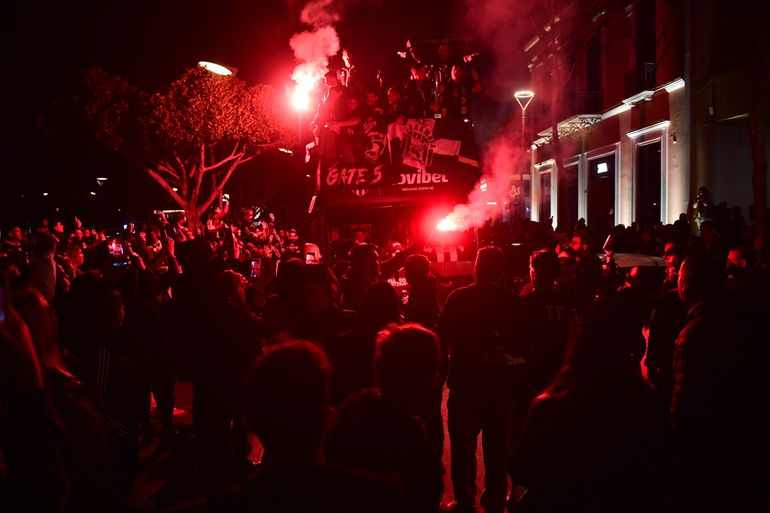 Συγκεκριμένα, οι οπαδοί της Καλαμάτας προκάλεσαν πανικό στους δρόμους της πόλης, με καπνογόνα, συνθήματα και πυροτεχνήματα για την τεράστια επιτυχία της ομάδας.