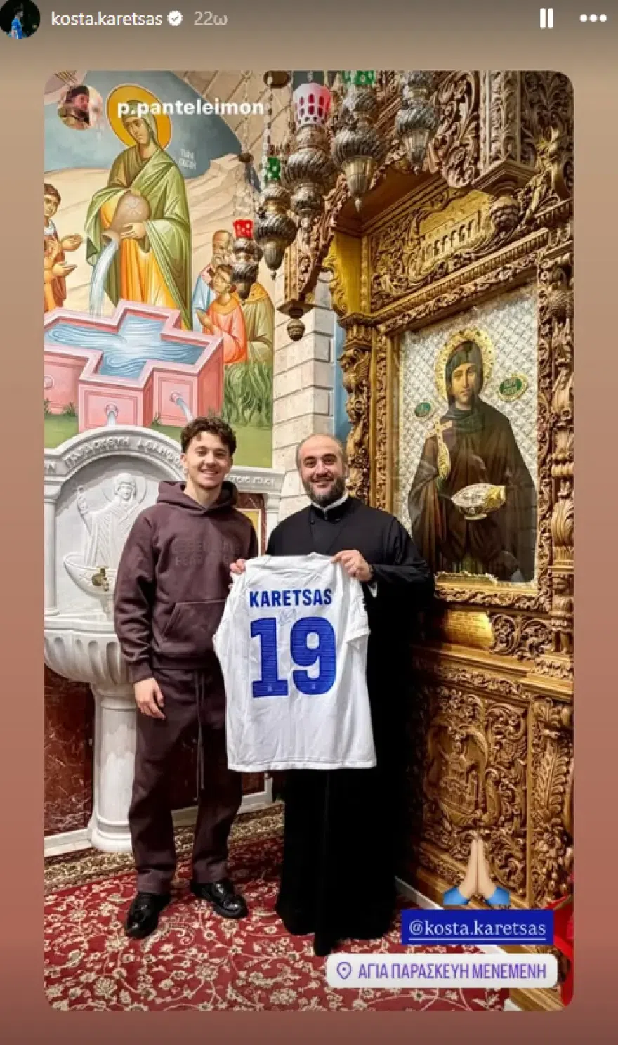 Εκεί και μεταξύ άλλων χάρισε στον πατέρα Παντελεήμων Αναστασιάδη μία φανέλα της Εθνικής Ελλάδος με το όνομά του.