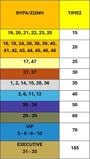 Οι τιμές των εισιτηρίων ανά θύρα: