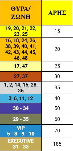 Οι τιμές των εισιτηρίων ανά θύρα: