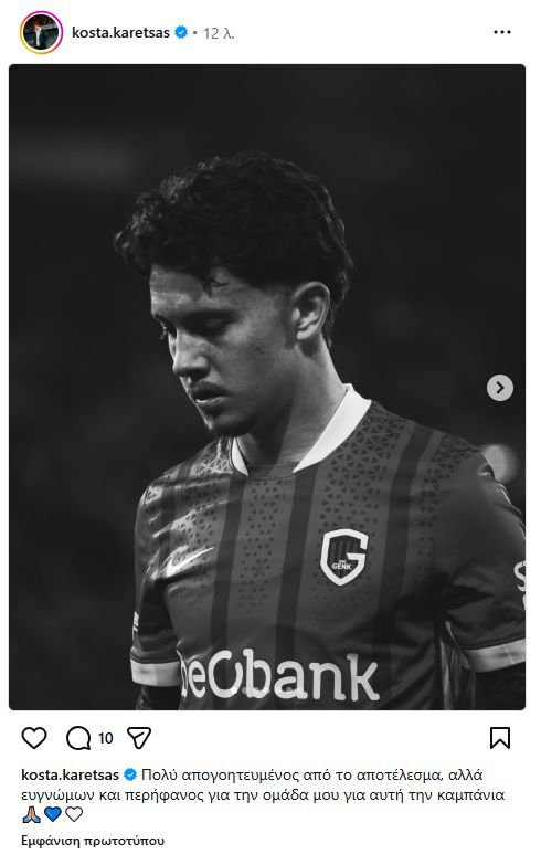 Ο Κωνσταντίνος Καρέτσας εξέφρασε την απογοήτευσή του για τον αποκλεισμό της Γκενκ από το Europa League, δηλώνοντας παράλληλα υπερήφανος για την πορεία της ομάδας του στη διοργάνωση.