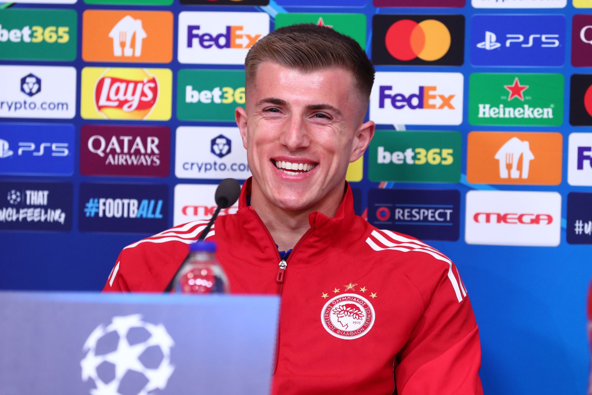 Ο Κοστίνια εκπροσώπησε τους παίκτες του Ολυμπιακού στη συνέντευξη Τύπου ενόψει της αναμέτρησης με τη Λεβερκούζεν.