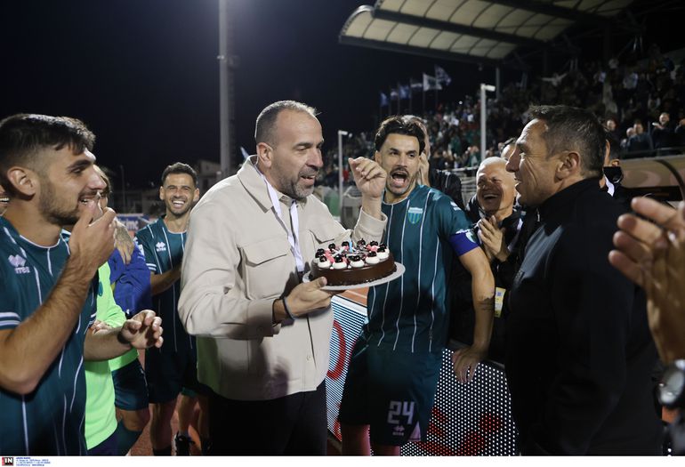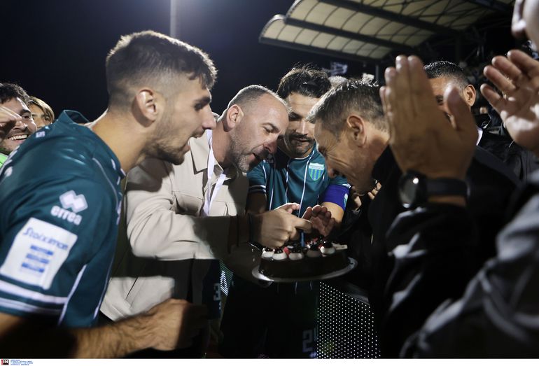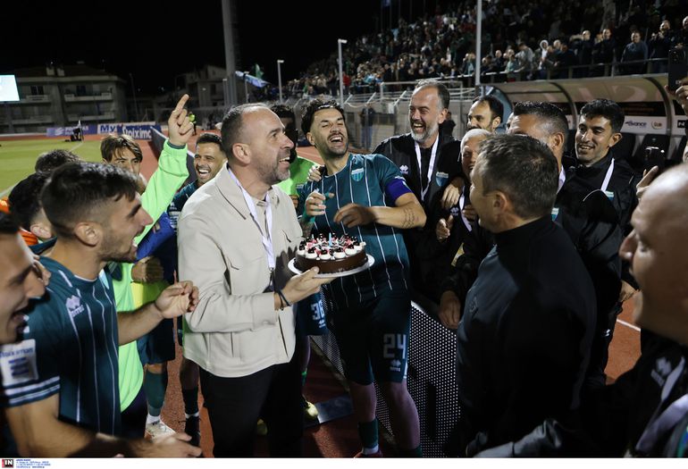 Συγκεκριμένα, ο προπονητής της ομάδας της Λιβαδειάς, Νίκος Παπαδόπουλος έχει γενέθλια σήμερα (05/10) και μετά το τέλος του αγώνα τον περίμενε μια τούρτα στον πάγκο.