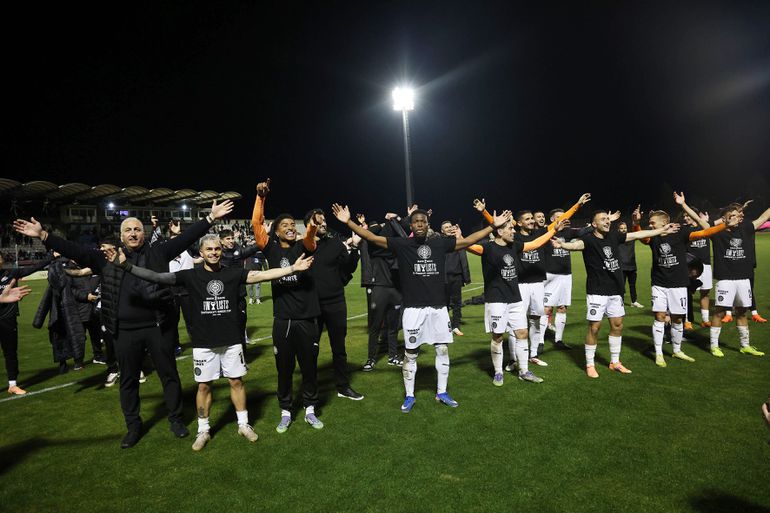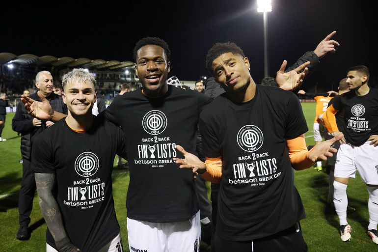 Οι ποδοσφαιριστές του ΟΦΗ στο τέλος γιόρτασαν έξαλλα την επιτυχία τους, φορώντας μάλιστα και πανηγυρικό μπλουζάκι. «Back2Back finalists», έγραφε το μαύρο μπλουζάκι, το οποίο φορούσαν οι παίκτες της κρητικής ομάδας.