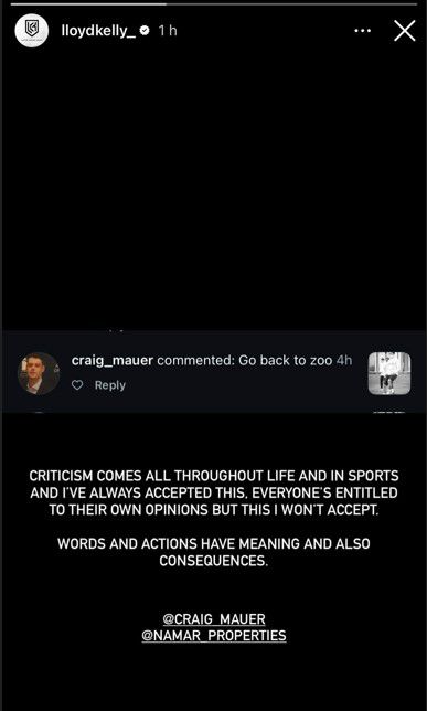 Συγκεκριμένα, το πρωί της Τετάρτης (18/02), ο Κέλι ανάρτησε σε story στον λογαριασμό του στο Instagram ένα σχόλιο από έναν οπαδό που έγραφε: «Να επιστρέψεις πίσω στον ζωολογικό κήπο». Ο παίκτης απάντησε άμεσα, τονίζοντας: «Η κριτική είναι μέρος της ζωής και του αθλητισμού και πάντα το αποδέχομαι αυτό. Ο καθένας έχει δικαίωμα στην άποψή του, αλλά αυτό δεν θα το δεχτώ. Τα λόγια και οι πράξεις έχουν νόημα αλλά και συνέπειες».