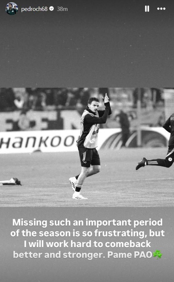 Ο Πέδρο Τσιριβέγια έστειλε το δικό του μήνυμα στον κόσμο του Παναθηναϊκού, μετά τη γνωστοποίηση του σοβαρού τραυματισμού του που θα τον αφήσει έξω για ενάμιση μήνα.