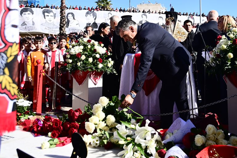 Ολόκληρο το ποδοσφαιρικό τμήμα του Ολυμπιακού βρέθηκε στο μνημόσυνο της Θύρας 7 για να αποτίσει φόρο τιμής.