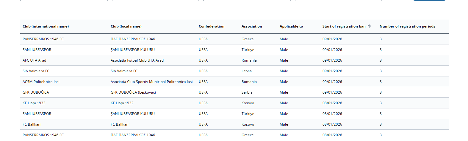 Ο Πανσερραϊκός απέκτησε ακόμα ένα πρόβλημα, καθώς μετά το χθεσινό (8/1) μεταγραφικό ban που ανακοινώθηκε από τη FIFA, στην ιστοσελίδα της παγκόσμιας ομοσπονδίας ανέβηκε πως του επιβλήθηκε ακόμη ένα.