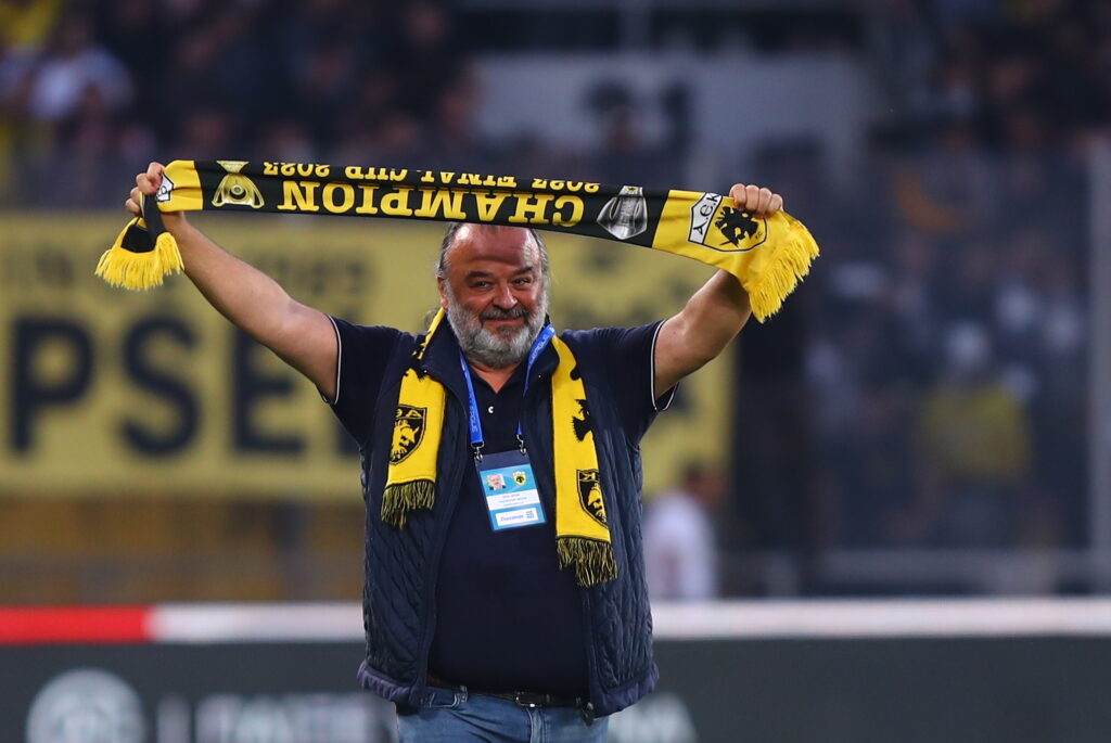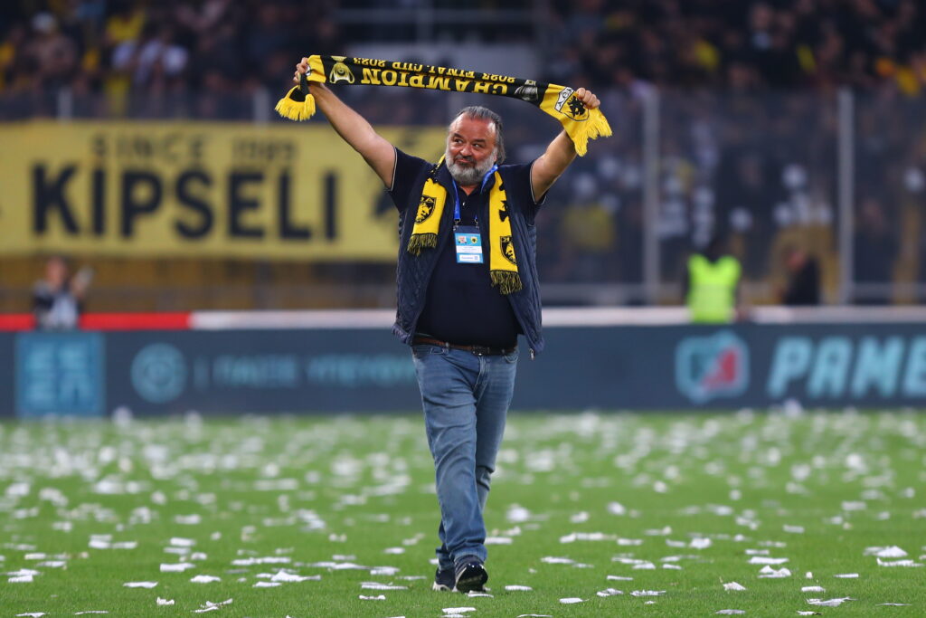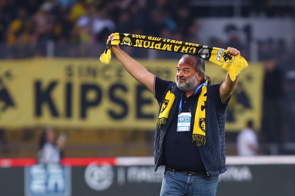 Μετά το εμφατικό 3-0 της Ένωσης στη Νέα Φιλαδέλφεια, αποτέλεσμα που φέρνει την ομάδα του μια ανάσα από τον τίτλο, ο ισχυρός άνδρας του συλλόγου ύψωσε ένα κασκόλ από την πρωταθληματική σεζόν του 2023.