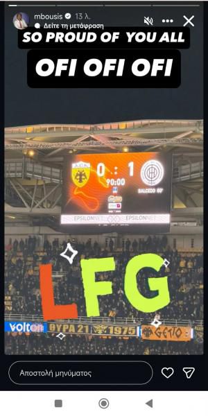Την εντυπωσιακή πρόκριση του ΟΦΗ επί της ΑΕΚ μέσα στην OPAP Arena πανηγύρισε ο Μιχάλης Μπούσης, ο οποίος παρακολούθησε από κοντά την αναμέτρηση.