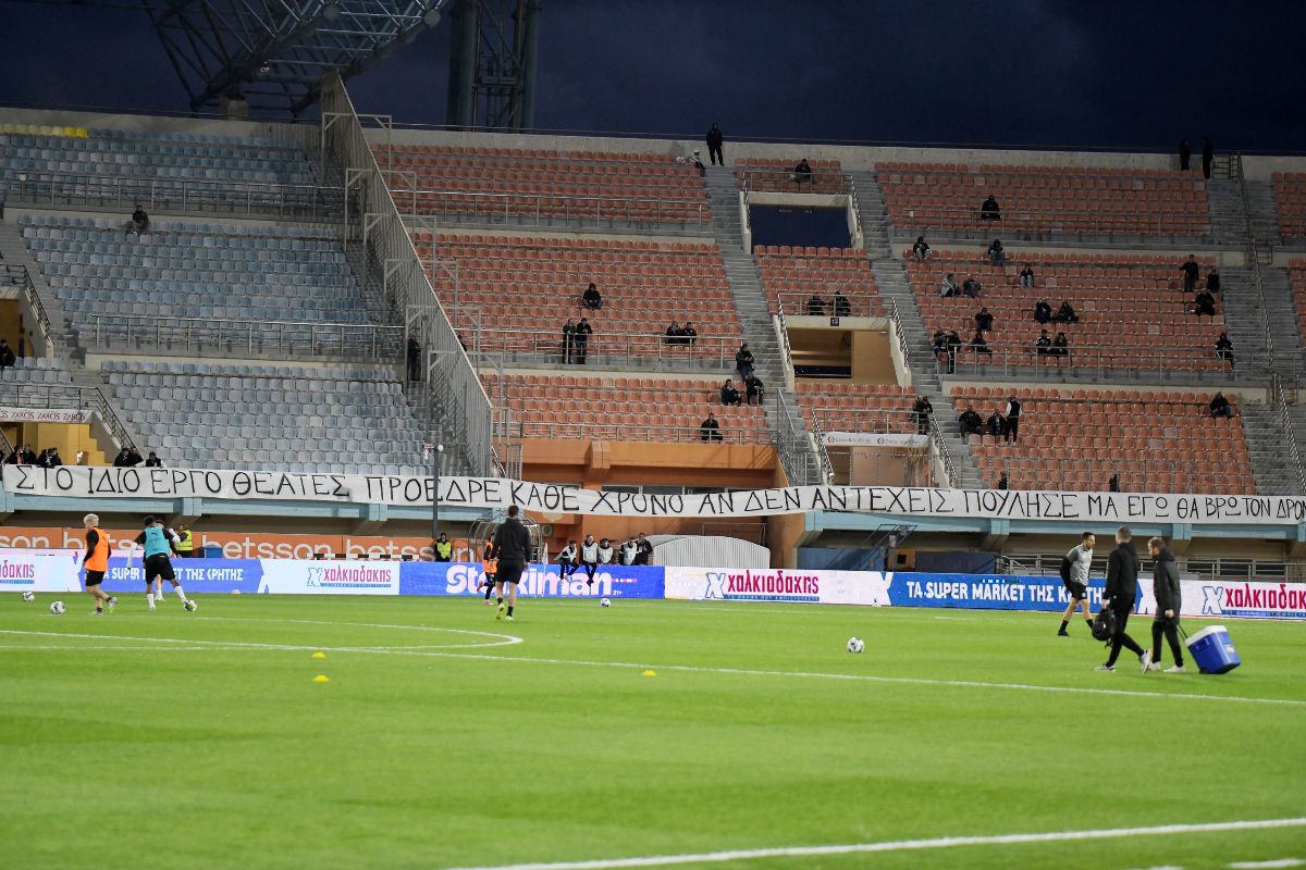 Η ομάδα δεν «τρέχει» καλή σεζόν και κατά μήκος της εξέδρας γράφουν: «Στο ίδιο έργο θεατές πρόεδρε κάθε χρόνο. Αν δεν αντέχεις πούλησε, μα εγώ θα βρω τον δρόμο».