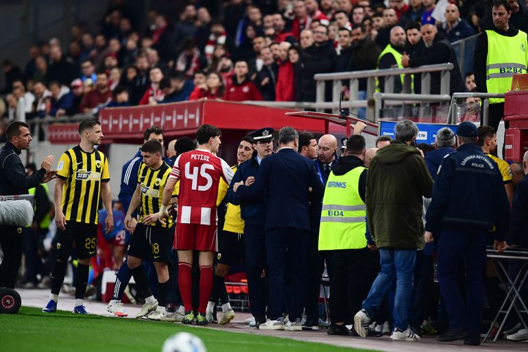 Το δεύτερο ημίχρονο του ντέρμπι ανάμεσα στον Ολυμπιακό και στην ΑΕΚ άργησε να ξεκινήσει, καθώς υπήρξε μία μικρή ένταση στη φυσούνα.
