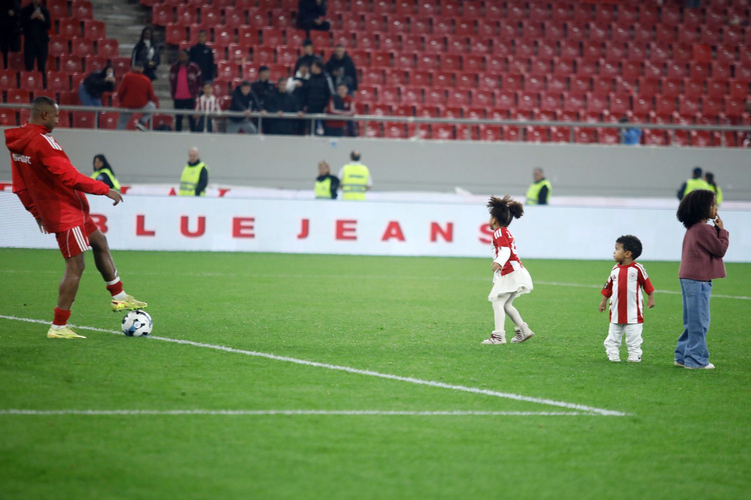 Μετά το ματς τα τρία παιδιά του Μαροκινού φορ μπήκαν στον αγωνιστικό χώρο και έπαιξαν με τον πατέρα τους, στην εστία που βρίσκεται μπροστά από τη «Θύρα 7».