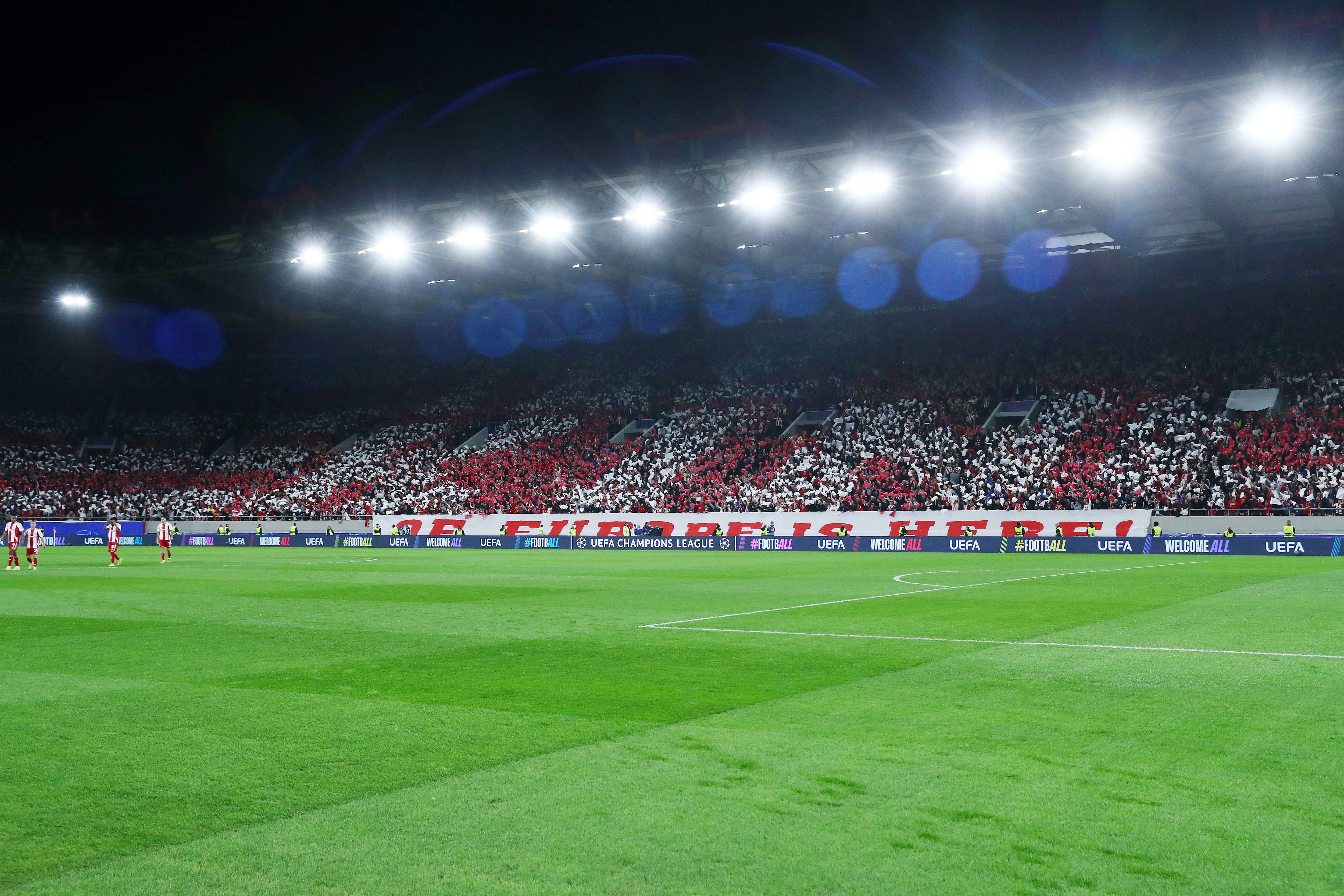 Οι οπαδοί του Ολυμπιακού ετοίμασαν ένα εντυπωσιακό κορεό για το ματς με τη Ρεάλ Μαδρίτης, το οποίο σηκώθηκε κατά την είσοδο των δύο ομάδων.