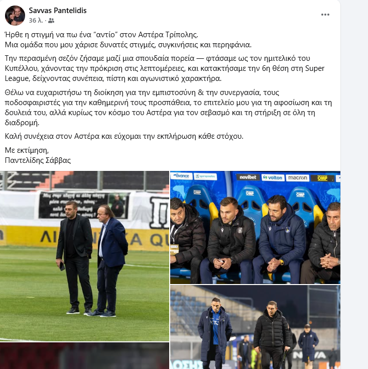 Ο Σάββας Παντελίδης «αποχαιρέτησε» τον Αστέρα Aktor καθώς δεν συνεχίζει στην τεχνική ηγεσία των Αρκάδων