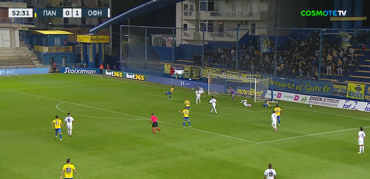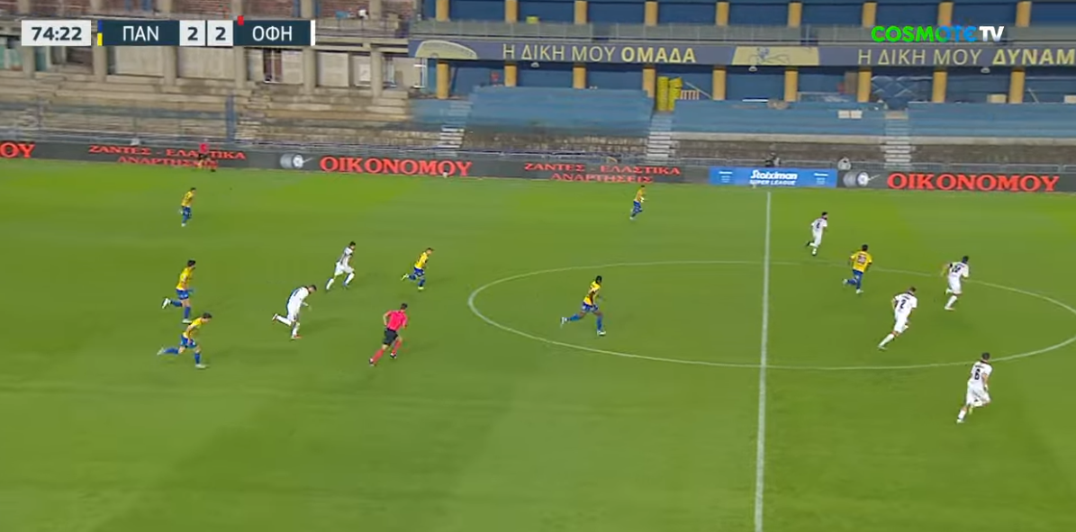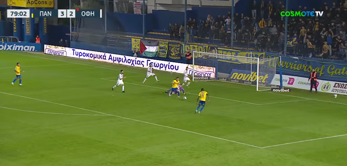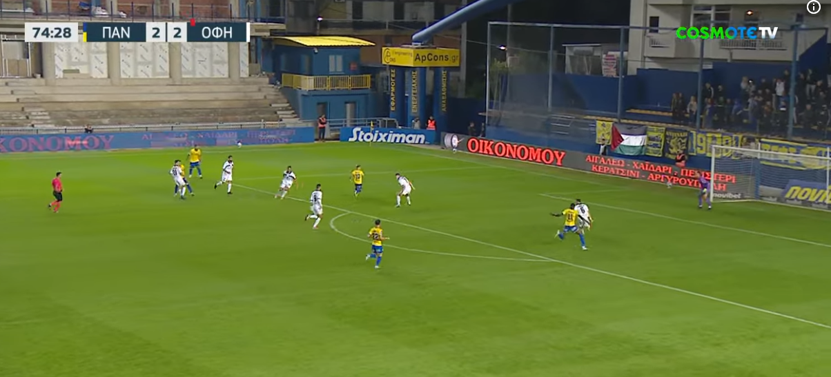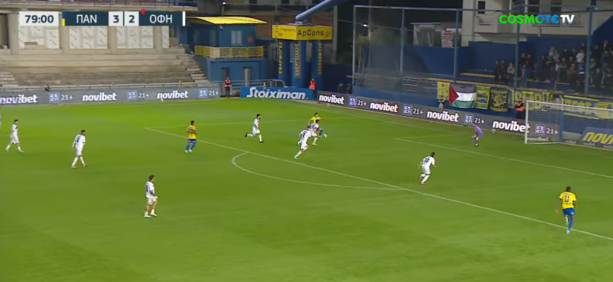 Μέχρι που φτάσαμε στο 80', όπου έκανε κίνηση στην πλάτη της αντίπαλης άμυνας μετά από εξαιρετική μεταβίβαση του Μπουχαλάκη, απελευθερώθηκε, απέφυγε τον γκολκίπερ Χριστογεώργο και έστρωσε στον Ενκολόλο, που με κοντινό σουτ/πλασέ διαμόρφωσε το μετέπειτα τελικό αποτέλεσμα.