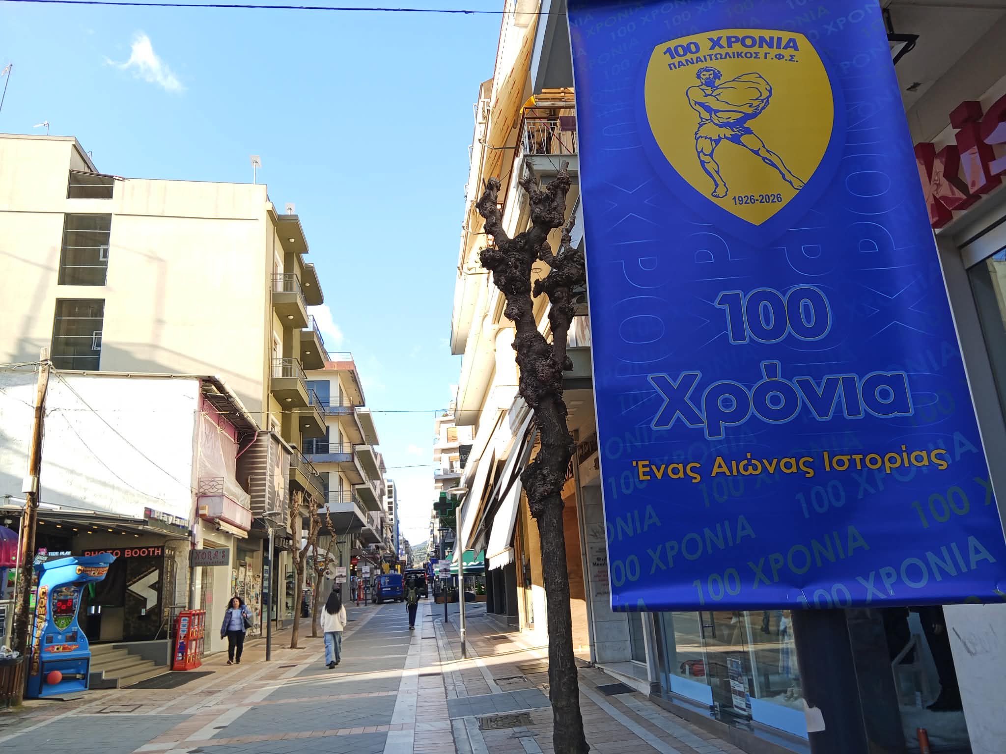 Λάβαρα του Παναιτωλικού κοσμούν κεντρικά σημεία του Αγρινίου, με αφορμή τα 100 χρόνια από την ίδρυση της ομάδας και των εκδηλώσεων που θα γίνουν.
