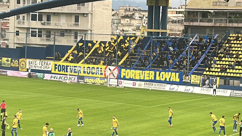 Συγκεκριμένα, οι οργανωμένοι οπαδοί της ομάδας του Αγρινίου, γνωστοί ως Warriors, ανάρτησαν στη θύρα τους ένα πανό με το σύνθημα «Forever Local Forever Loyal».