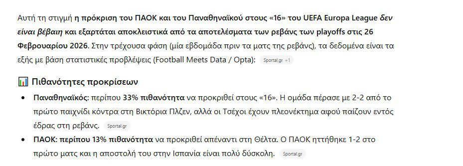 Η τεχνολογία, το ChatGPT, θεωρεί τον ΠΑΟΚ και τον Παναθηναϊκό, ενόψει των αποψινών τους ρεβάνς, ως τα αουτσάιντερ της σειράς τους με Θέλτα και Βικτόρια Πλζεν αντίστοιχα