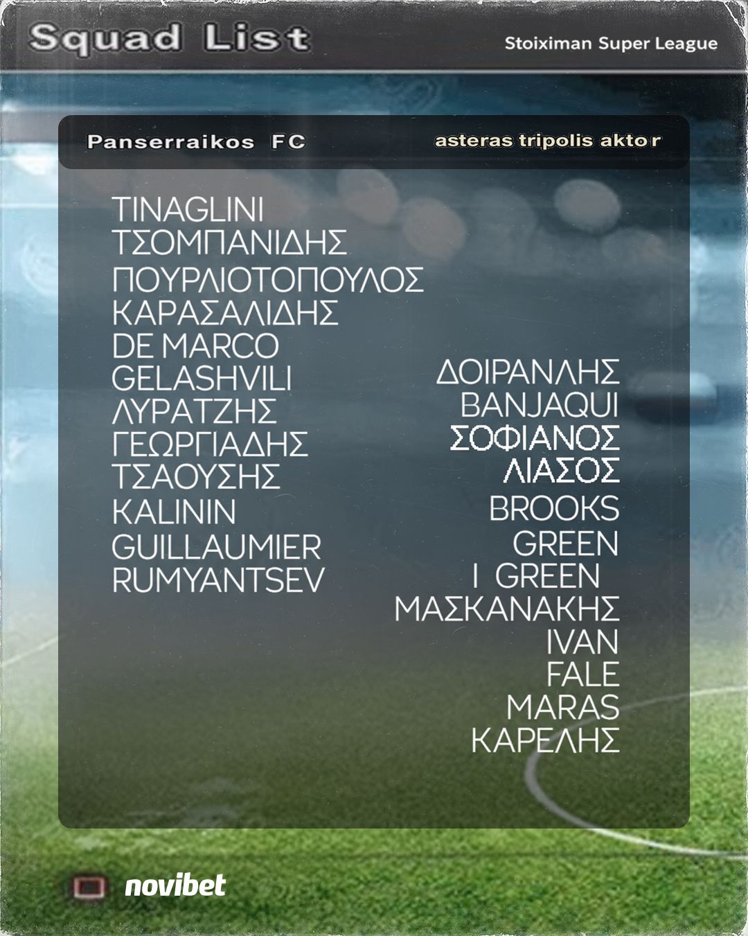 Η αποστολή των «λιονταριών» είναι η εξής: Τιναλίνι, Τσομπανίδης, Πουρλιοτόπουλος, Λύρατζης, Καρασαλίδης, Γεωργιάδης, Τσαούσης, Ντε Μάρκο, Κάλινιν, Γκελασβίλι, Λιάσος, Δοϊρανλής, Μπρούκς, Γκιγιομιέ, Ρουμιάντσεβ, Σοφιανός, Μασκανάκης, Ίβαν, Φαλέ, Ζιντάν, Νούνελι, Μάρας, Καρέλης, Γκριν.