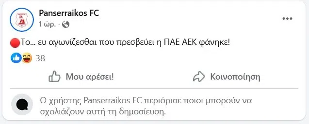 Ο Πανσερραϊκός άφησε... ερωτηματικά για την ΑΕΚ μετά το μεταξύ τους ματς, όμως λίγο μετά «κατέβασε» την ανάρτησή του