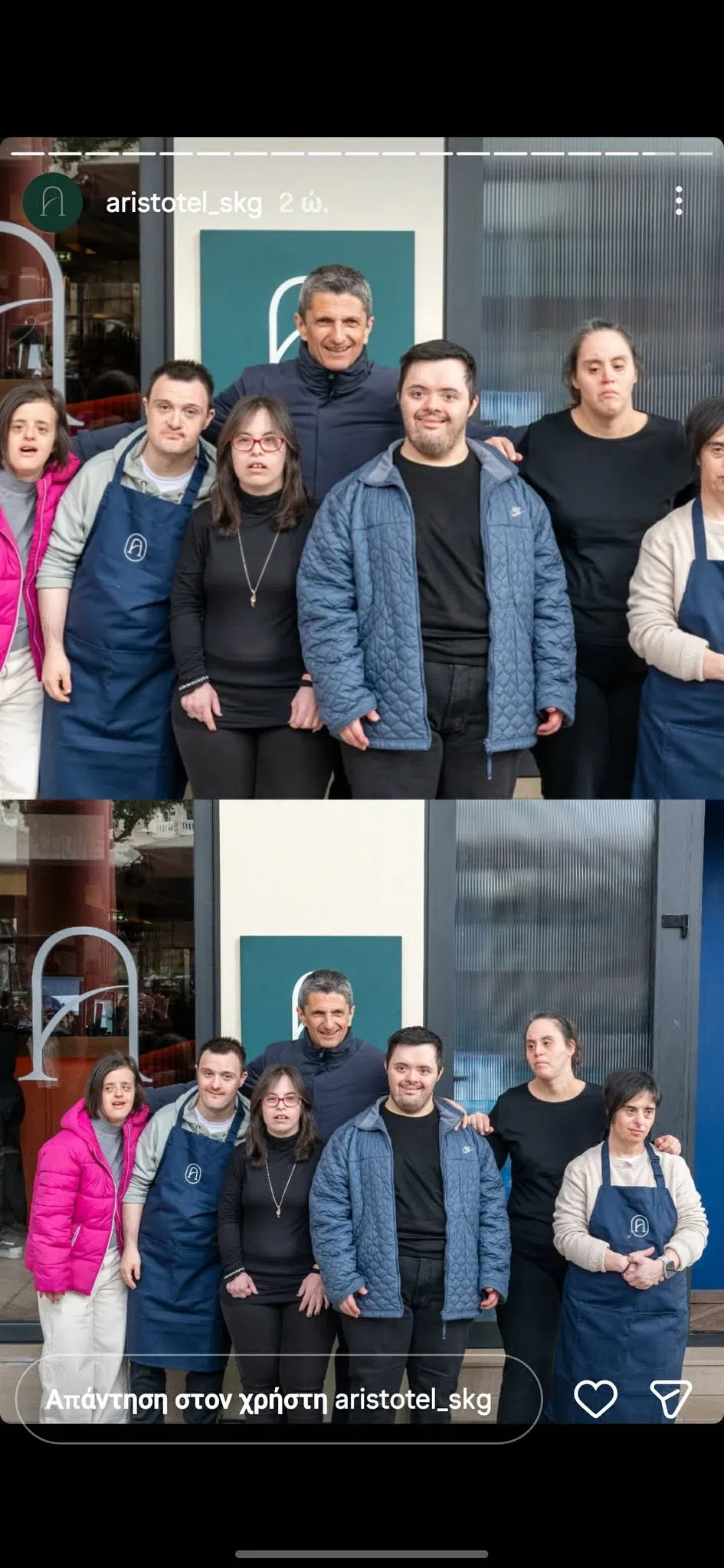 Με αφορμή την Παγκόσμια Ημέρα για το Σύνδρομο Down μία καφετέρια στη Θεσσαλονίκη άνοιξε τις πύλες της σε άτομα με Σύνδρομο Down, που εργάστηκαν τότε στο χώρο σε διάφορα πόστα.