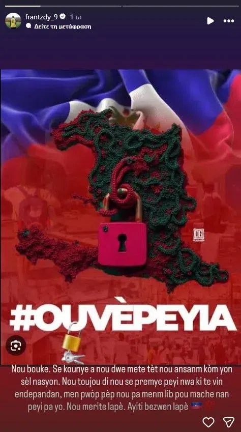 Με μια ανάρτηση σε story, η οποία απεικόνιζε τον χάρτη της Αϊτής με ένα λουκέτο, ο Πιερό εξέφρασε την αγωνία και την κούρασή του για την κατάσταση που επικρατεί.