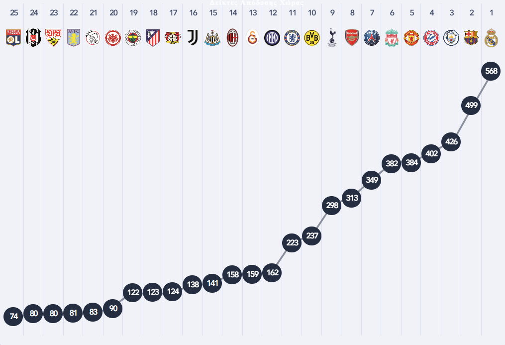 Η UEFA ανάρτησε τις ευρωπαϊκές ομάδες με τα μεγαλύτερα εμπορικά έσοδα για το 2025 και τα νούμερα... ζαλίζουν. Τι συμπεριλαμβάνεται στη σχετική λίστα. Προέρχονται από έξι πρωταθλήματα.