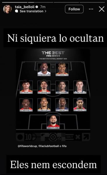 Εκείνη του Ραφίνια, η Τέα Μπελόλι, ανήκει πλέον σε αυτό το «κλαμπ», καθώς... ξεσπάθωσε κατά των επιλογών για την καλύτερη ενδεκάδα των «The Best» της FIFA, που ανακοινώθηκε σήμερα (16/12) στην Ντόχα.