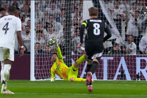 Η Άρσεναλ είχε την ευκαιρία να ανοίξει το σκορ στη Μαδρίτη και να σβήσει τις ελπίδες της Ρεάλ για πρόκριση από νωρίς, ωστόσο ο Κουρτουά είχε άλλη άποψη. Οι Κανονιέρηδες κέρδισαν πέναλτι στο 13ο λεπτό και ο Σάκα ανέλαβε την εκτέλεση, με τον ίδιο να επιχειρεί κάτι σαν... λόμπα και τον Βέλγο γκολκίπερ να τον νικάει, κρατώντας το μηδέν.